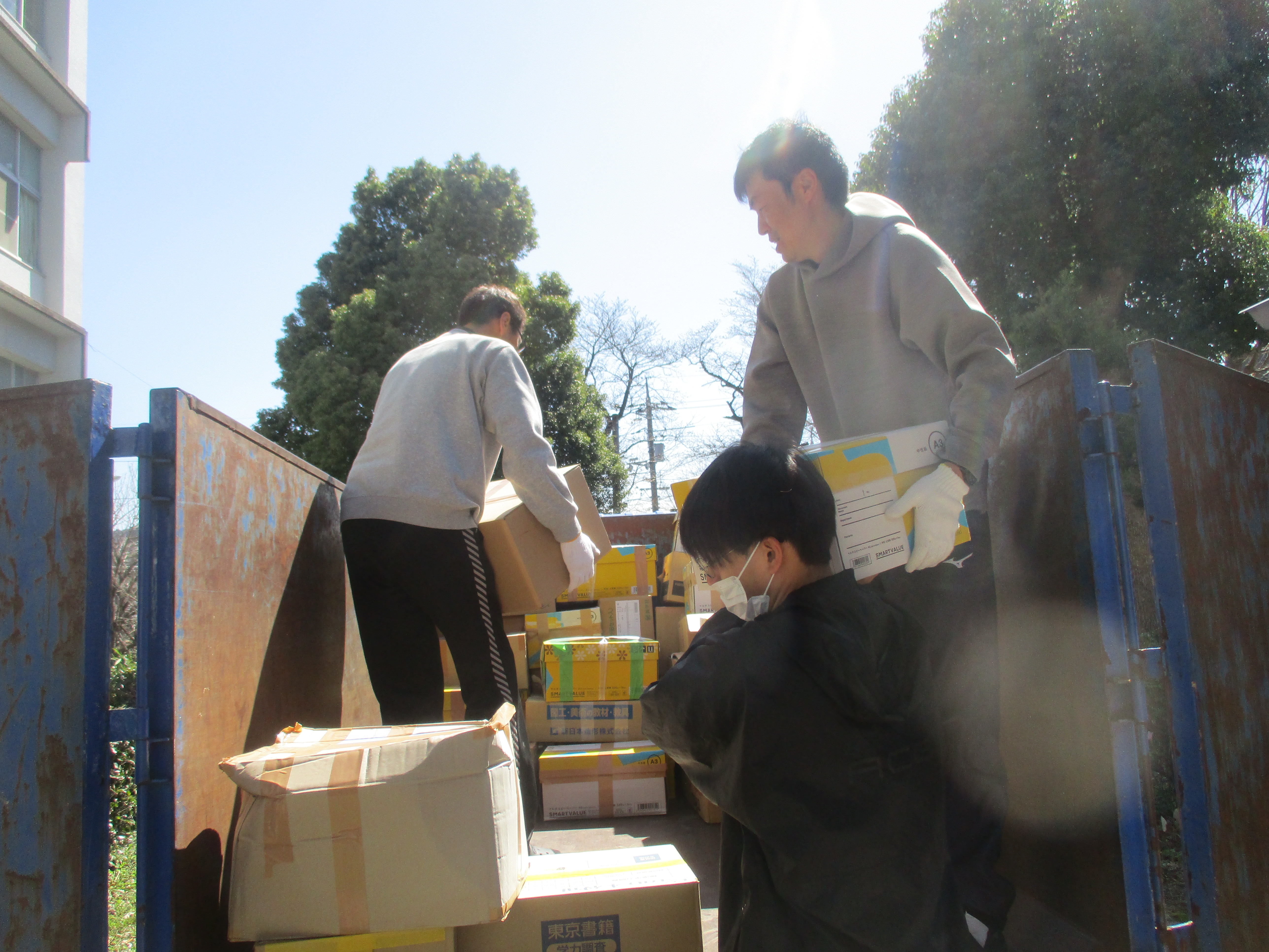 協力してトラックに積み込みます